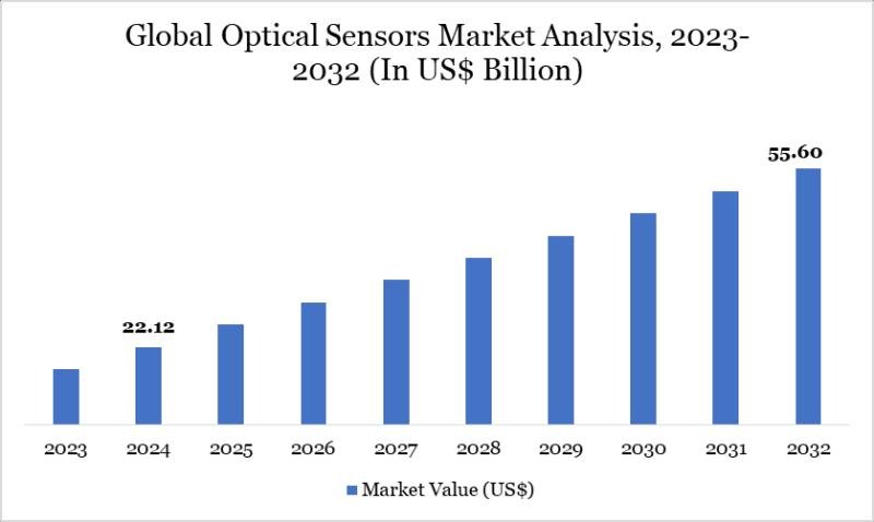 The Global Optical Sensors Market reached USD 22.12 billion in 2024 and is expected to reach USD 55.60 billion by 2032, growing at a steady CAGR of 12.21% during the forecast period 2025-2032.