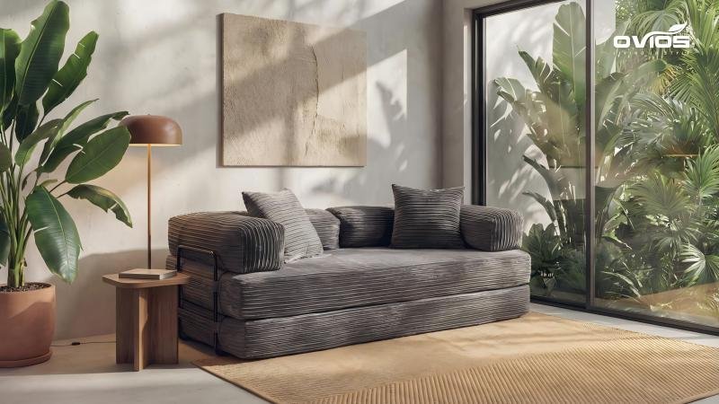 OVIOS expands its convertible furniture line with the MEGA Convertible Sleeper Sofa, a versatile system designed to function as a loveseat, folding chair, lounge chaise or floor mattress. With its adaptable design, MEGA serves as the ultimate anchor for multi-generational homes and rental properties alike—balancing practicality with style for diverse living needs.