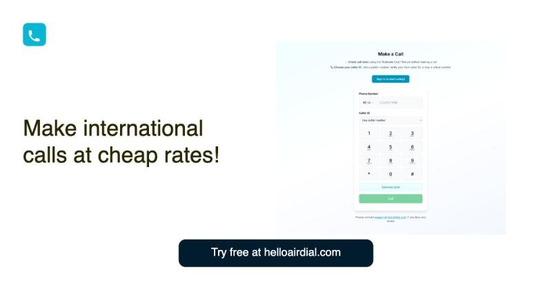 The service leverages WebRTC technology to deliver voice calls directly through web browsers, and includes features like custom caller ID and virtual phone numbers. HelloAirDial operates on a pay-as-you-go pricing model where credits never expire, allowing users to maintain calling capabilities without ongoing monthly charges.