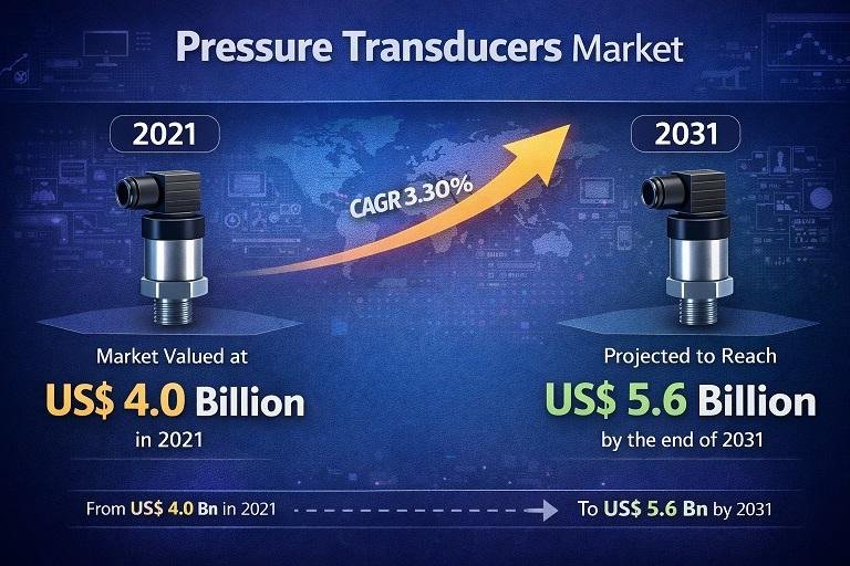 The pressure transducers market is likely to reach ~US$ 5.6 Bn in 2031