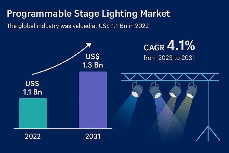 The Programmable Stage Lighting Market is projected to reach USD 1.3 billion by 2031, growing at a CAGR of 4.1% during the forecast period. The market growth is driven by the increasing demand for LED-based stage lighting, automation, and wireless DMX control systems across concerts, theatres, TV studios, and architectural installations.