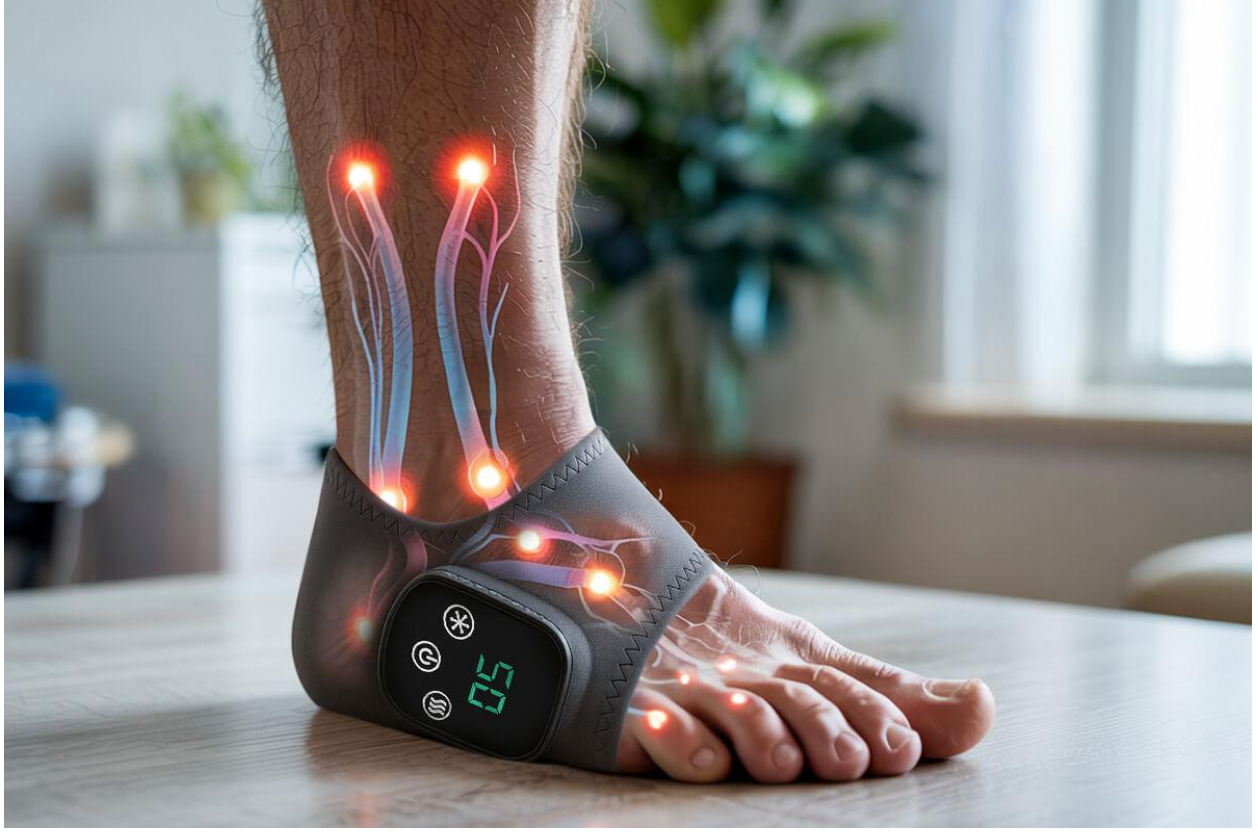 The warming element is the first thing most users notice. When the device activates, targeted heat radiates into the foot tissue. This is not surface-level warmth like a sock fresh out of the dryer. The heat is designed to encourage blood vessels to dilate, increasing blood flow to areas where circulation may be sluggish. For people who deal with chronically cold feet, that improved flow is intended to bring more oxygen and nutrients to nerve tissues that may have been operating in a deficit. The device offers adjustable heat levels so users can start gentle and work up, which is particularly important for anyone with reduced foot sensation who might not feel heat building the way a healthy foot would.
