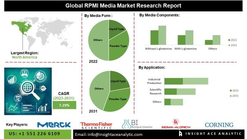 InsightAce Analytic Pvt. Ltd. announces the release of a market assessment report on the “Global RPMI Media Market Size, Share & Trends Analysis Report By Media Form (Liquid Type, Powder Type), by Media Components (Without L-glutamine, With L-glutamine) and by Application (Scientific Research, Industrial Production), Region, Market Outlook And Industry Analysis 2031”