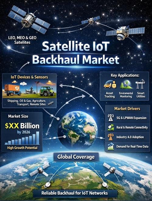 The Satellite IoT Backhaul Market refers to satellite communication services used to transmit data from IoT devices in remote or rural areas to central networks or cloud platforms. IoT backhaul via satellite is used where terrestrial communication networks such as cellular or fiber are not available. This technology is used in industries such as agriculture, mining, maritime, oil and gas, environmental monitoring, and remote asset tracking. Satellite IoT backhaul systems collect data from IoT sensors and transmit it via satellite to data centers or cloud platforms for analysis and monitoring. The market is driven by increasing IoT deployments in remote locations, growth in satellite communication technology, and demand for remote monitoring systems. Low Earth orbit satellite networks are improving IoT connectivity coverage globally. The market includes satellite service providers, IoT communication modules, and network management platforms. Growth in remote monitoring and industrial IoT is driving market demand.