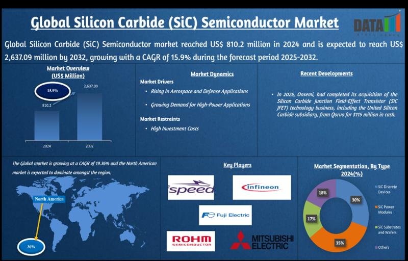 The global Silicon Carbide (SiC) Semiconductor Market reached US$ 810.2 million in 2024 and is projected to grow significantly to US$ 2,637.09 million by 2032, expanding at a CAGR of 15.9% during the forecast period (2025-2032). The market’s strong growth trajectory is fueled by increasing demand for high-efficiency power electronics across electric vehicles (EVs), renewable energy systems, industrial automation, telecommunications infrastructure, and aerospace technologies.