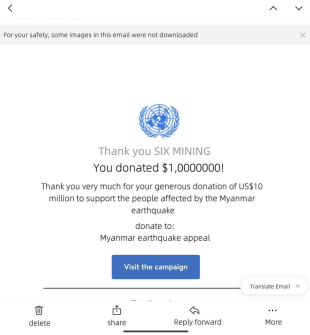 London, UK, April 04, 2025 (GLOBE NEWSWIRE) — After the earthquakes in Thailand and Myanmar, SIX MINING, a world-class cloud mining platform established in the UK, donated $10 million to the disaster areas for disaster relief and food shortages. Such natural disasters are misfortunes for the people in the disaster areas. All we can do is to support them to the best of our ability. The donation has been handed over to the Myanmar Red Cross Office.
