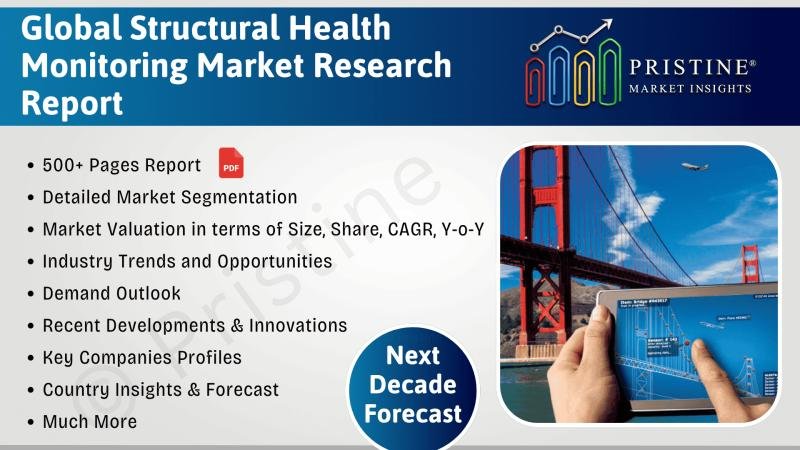 2025 – Pristine Market Insights, a leading market research firm, announced the release of its latest and comprehensive market research report on structural health monitoring market. The report spans over 500 pages and delivers 10-year market forecast in US dollars (or custom currencies upon request). It provides in-depth analysis of market dynamics (drivers, opportunities, restraints), PESTLE insights, latest industry trends, and demand factors. The report includes segmented market value, share (%), compound annual growth rate (CAGR), and year on year growth projections, along with regional forecasts for the next decade. Key market insights for leading countries are covered & detailed profiles of the top 20+ companies are included, with additional profiles available upon request.