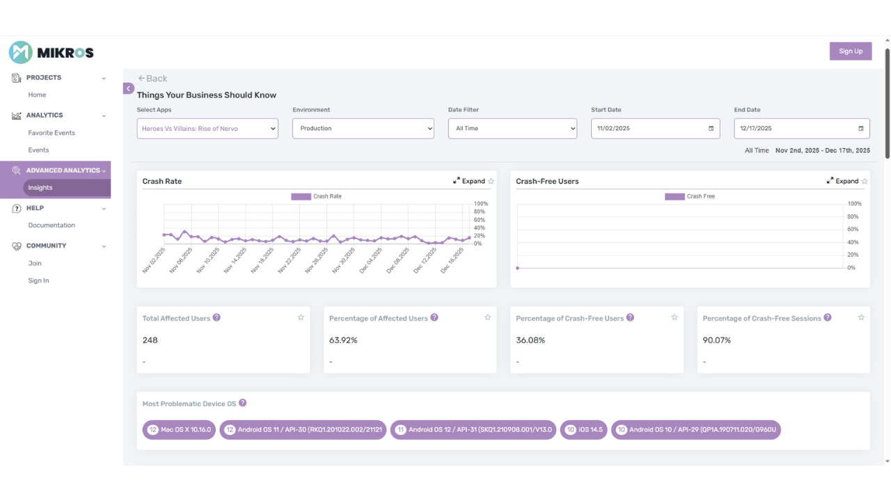 Each year, indie developers in the U.S. collectively lose more than $850 million due to incomplete analytics, poor targeting, and the inability to identify their most valuable players. MIKROS Analytics directly tackles this issue by providing enterprise-grade insights in an accessible, automated, and actionable dashboard.