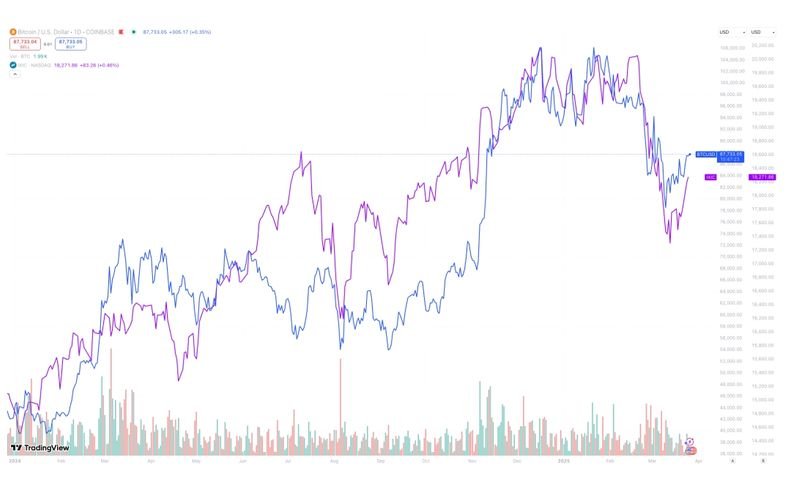 U.S. economic turbulence has intensified in early 2025, triggering sharp corrections across risk assets. The Nasdaq Index plunged -15% from recent highs, while Bitcoin tumbled over -25% amid flight-to-safety flows.