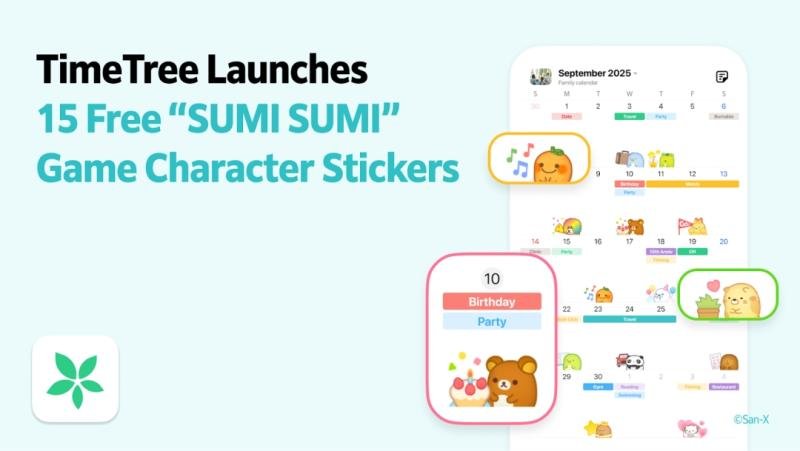 Global calendar-sharing platform TimeTree announced a collaboration with Imagineer’s hit puzzle game SUMI SUMI, introducing 15 complimentary character stickers designed to revolutionize how users organize and visualize their schedules. The collection showcases popular San-X characters, including Sumikkogurashi and Rilakkuma, set to roll out on October 2nd.