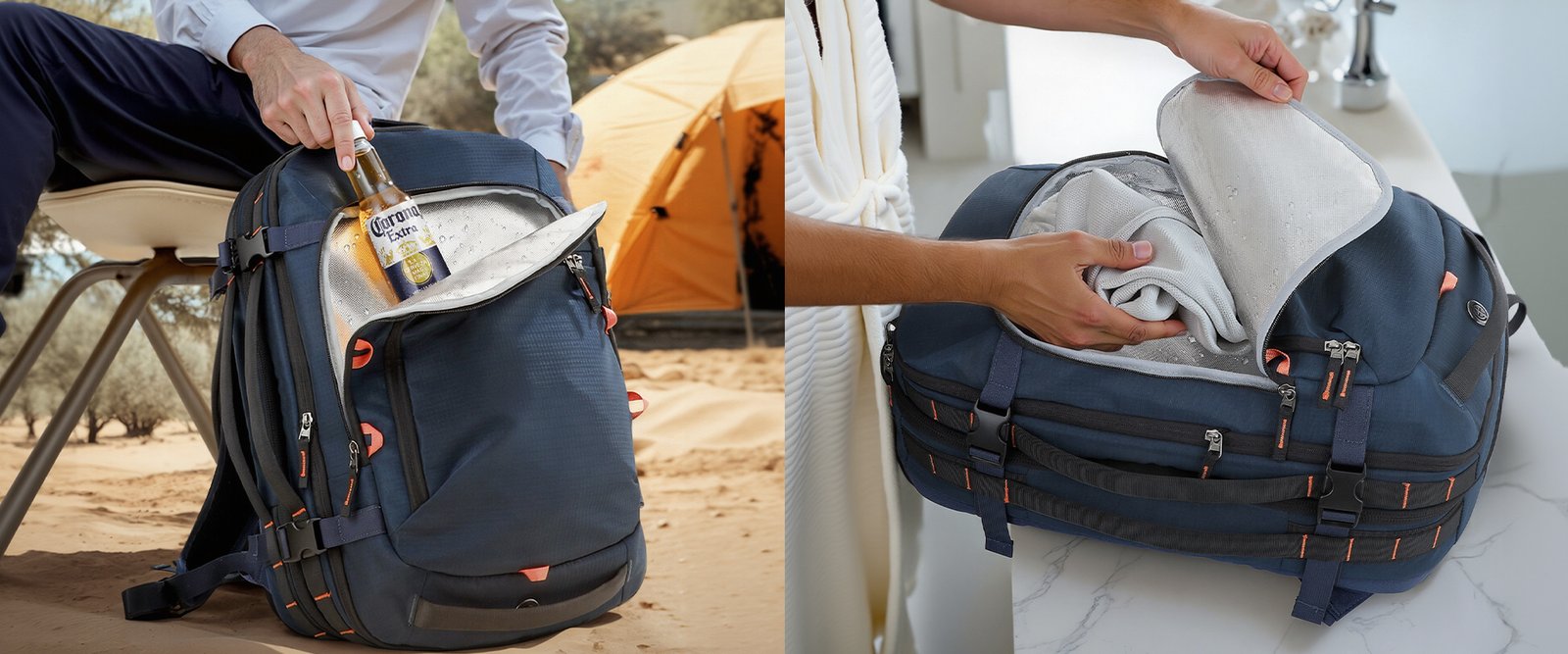- Stay Fresh with Separate Dry-Wet Storage: For gym-goers, outdoor enthusiasts, and business travelers, staying organized means keeping wet and dry items separate. The dual aluminum-lined dry-wet pockets allow you to store toiletries, gym gear, or damp clothes without worrying about leaks or odors.