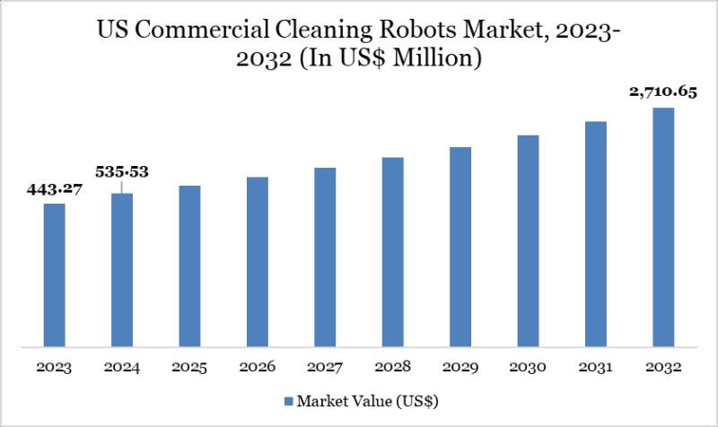 The US Commercial Cleaning Robots Market size reached US$535.53 million in 2024 and is expected to reach US$2,710.65 million by 2032, growing at a CAGR of 22.7% during the forecast period 2025-2032.