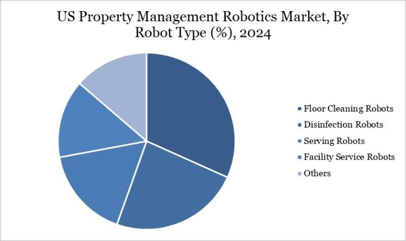 Floor cleaning robots dominate the US property management robotics market, driven by efficiency and sustainability. They cut labor by up to 66% and save 70% water, making them a key choice for commercial and large residential buildings.