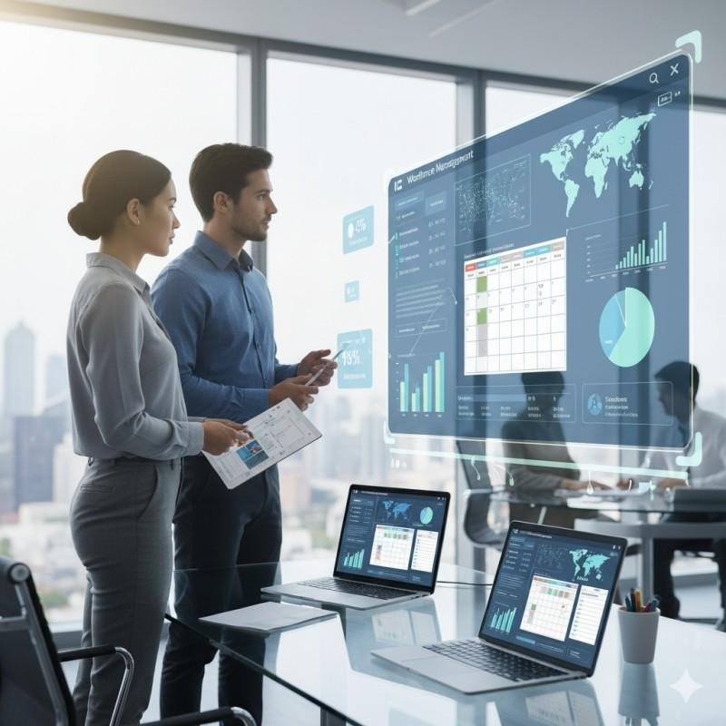 Workforce management software is a digital solution designed to streamline employee scheduling, time tracking, attendance, and productivity monitoring. It helps organizations optimize labor resources, ensure compliance, reduce operational costs, and enhance overall workforce efficiency.