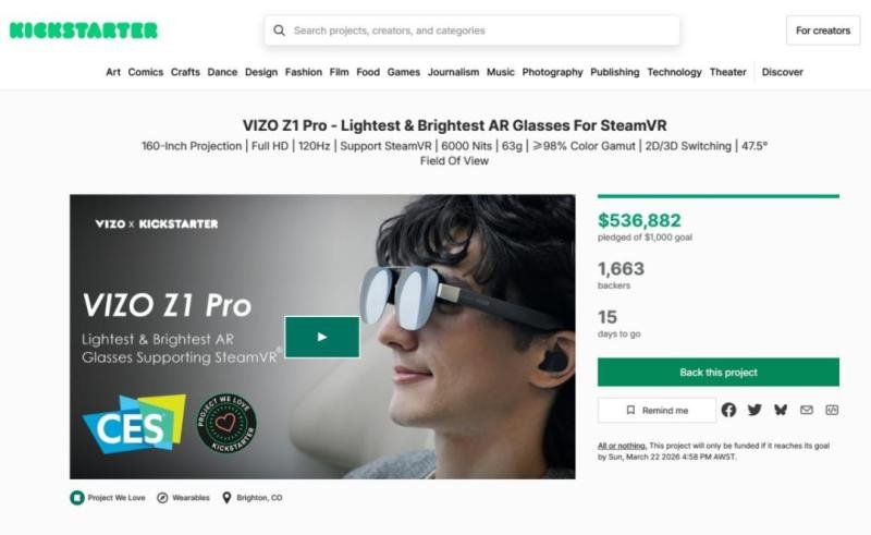 “We are incredibly encouraged by the strong support from the Kickstarter community,” said Komi Zhang, Marketing Director at TOZO. “The response to VIZO Z1 Pro demonstrates the excitement around immersive wearable displays and validates our vision of making AR experiences more practical and accessible for everyday users.”