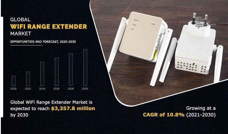 Allied Market Research, titled, “Wi-Fi Range Extender Market by Type and Application: Global Opportunity Analysis and Industry Forecast, 2021-2030”, the global Wi-Fi range extender Industry size was valued at $1250.2 million in 2020, and is projected to reach $3357.8 million by 2030, registering a CAGR of 10.8%.