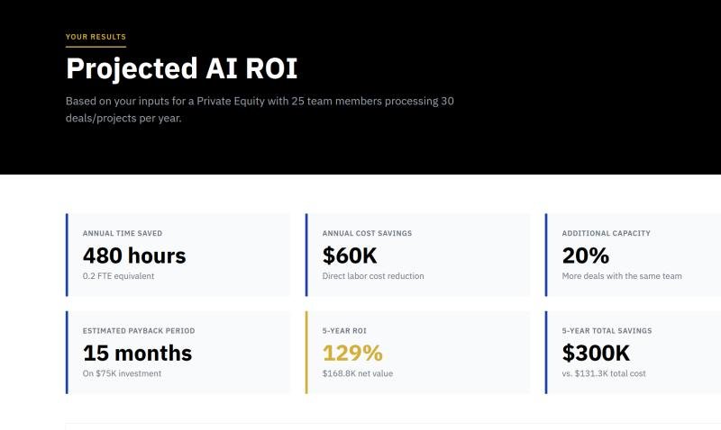 The AI ROI Calculator addresses this gap by translating abstract AI capabilities into concrete financial projections that investment committees and firm leadership can evaluate. Rather than offering generic industry benchmarks, the tool adapts its estimates based on the user’s specific organizational inputs.