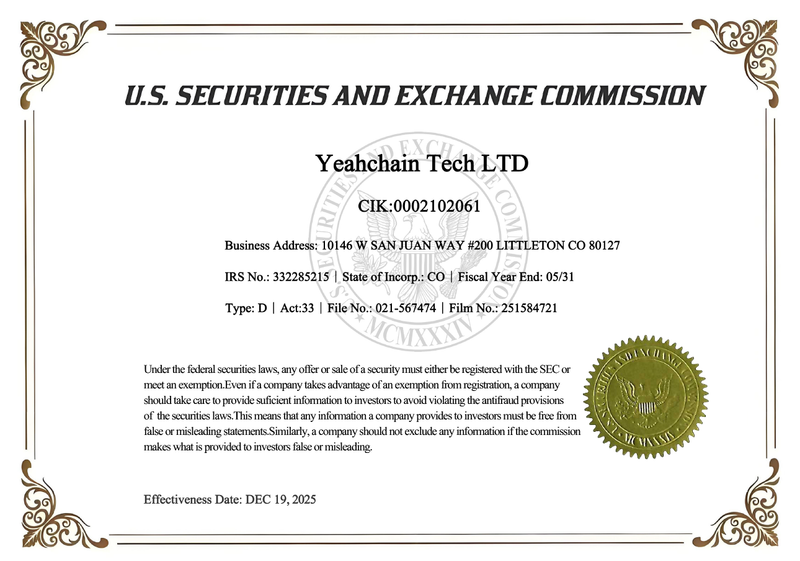 As part of this update, Yeahchain Exchange continues to advance its governance and transparency framework by referencing the corporate disclosure practices established by the U.S. Securities and Exchange Commission (SEC). Relevant operating entities associated with the platform are included in publicly accessible SEC information systems, providing a verifiable foundation for company identification and disclosure consistency.